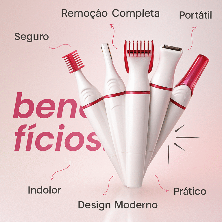 Nosso Depilador Feminino 5 em 1 oferece múltiplas ferramentas removíveis com design ergonômico,